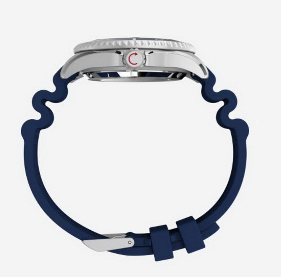 Sapphire crystal Automatic movement Blue dial Ceramic Bezel Stainless Steel Case Screw crown Rubber Band Date Display Case Diameter 44mm Case Thickness 14mm Water resistant 200m